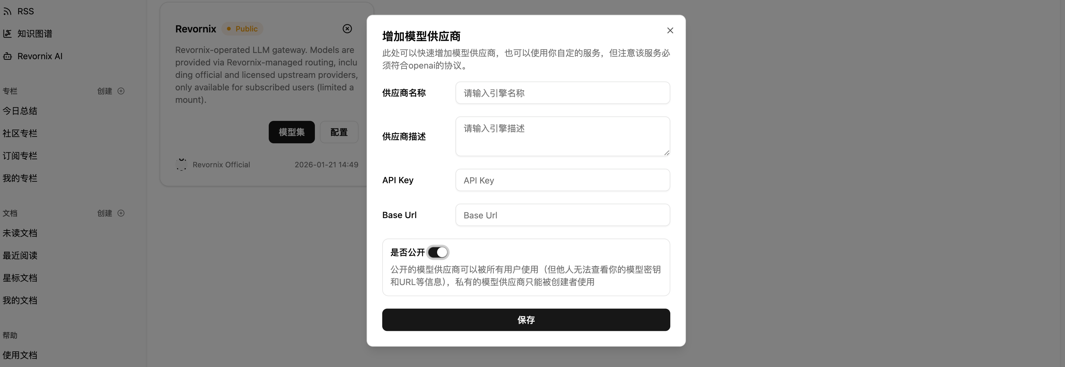 Revornix supports custom third-party models, so you can configure the models you want to use.