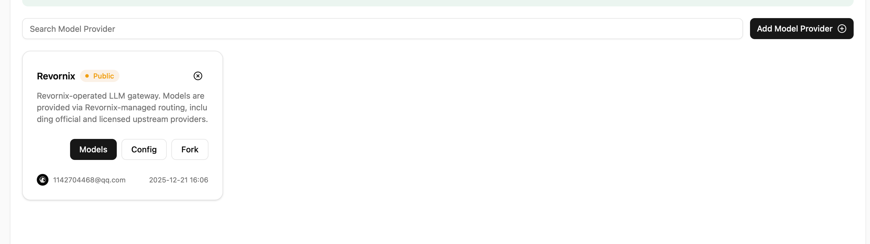 If you want to use a model provider shared by others, you must click the Fork button on the provider card, otherwise the system cannot retrieve it. If you no longer want to use it, we recommend un-forking it.